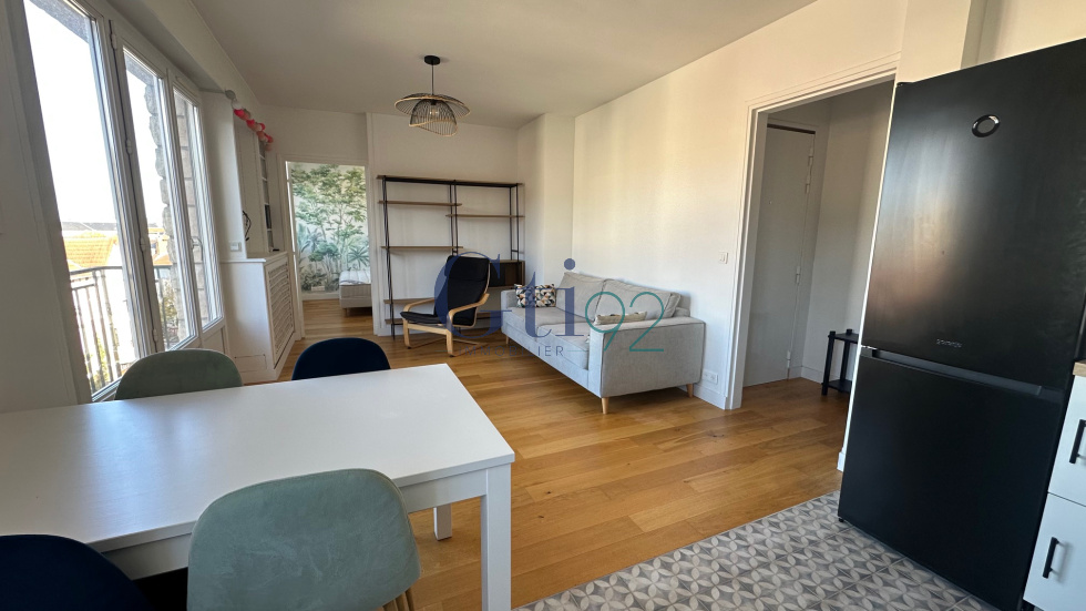 Centre ville , 2 mn du bois de Clamart et à 300 mètres du T6 Division Leclerc et proche centre ville , - 2P MEUBLE situé dans une petite copropriété de 3 étage, au denrier étage . Cet apppartement a été refait intégralement avec beaucoup de gout comprenant une entrée avec verrière, un salon attenant à cuisine américaine équipée (lave linge et lave vaisselle) avec balcon, une chambre lumineuse avec placard, un dégagement attenant à wc indépendant, dressing, salle d'eau avec double italienne et fenêtre. Toutes les fenêtres sont en double vitrage avec volet électrique. Ce bien possède une très belle vue dégagée sur Clamart et sa situation proche du bois est stratégique. Un parking extérieur complète ce bien. Loyer 1280 euros dont 160 euros de provision de charges comprenant l'eau froitde suivant compteur divisionnaire, le chauffage. L'eau chaude est par un chauffeau au gaz dont l'entretien est compris également dans la provision de charges.