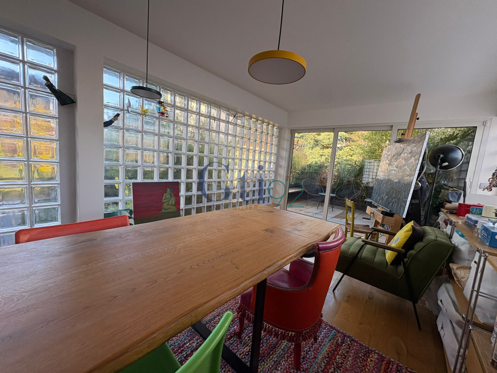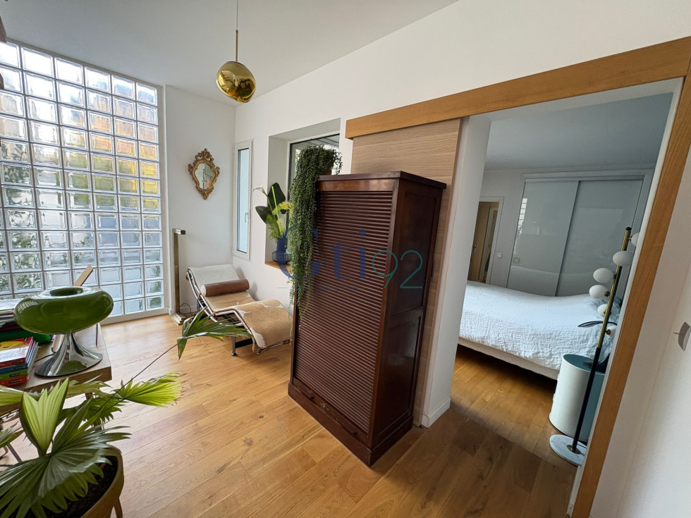HYPER GARE DE CLAMART - DANS LA RUE COMMERCANTE, A 3 MIN A PIED DE LA GARE DE CLAMART (7 MIN VIA MONTPARNASSE) VOUS TROUVEREZ UNE MAISON D'ARCHITECTE DE 1995 DE 125M2 EN FOND D'UNE PARCELLE D'UNE COPROPRIETE, AGRANDI EN 2022 AVEC SA TOITURE RECENTE. COMPRENANT UNE AGREABLE PIECE DE VIE LUMINEUSE AVEC SA CHEMINEE DE 38M2 DONNANT ACCES DE PLAIN PIED DUR SON JARDIN ET A SA TERRASSE - UNE CUISINE EQUIPEE IND. A L'ETAGE, UN COULOIR AVEC DES RANGEMENTS DESSERVANT SUR DEUX CHAMBRES - UNE SALLE DE BAIN ET WC IND. EN PASSANT PAR UNE DES CHAMBRES, VOUS ACCEDEZ A UN AGREABLE BUREAU QUI NOUS EMMENE A UNE SUPERBE PIECE LUMINEUSE, IDEAL POUR CREER UNE SUITE PARENTALE AVEC UN POINT D'EAU ET SA TERRASSE. AU FOND DE LA PARCELLE, VOUS TROUVEREZ UN STUDIO AMENAGE DE 35M2 AVEC SA SALLE DE BAIN ET WC. DE PLUS, VOUS DISPOSEZ D'UNE CAVE DE 5M2 DANS LA COPROPRIETE. POSSIBILITE D'ACQUERIR UN PARKING DANS LES ENVIRRONS A MOINS DE 30.000€